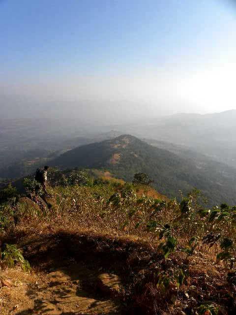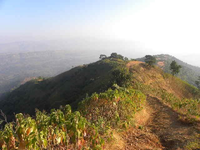 The place of night halt- small hut could be seen from top where we had to reach before dusk. Torna was hazily visible because of winter fog. We descended back to the point where the path gets divided and one leads to Sulvela Machi.