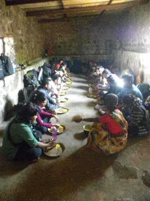 The steep slope literally made my legs shiver. It was tough to descend for most of them. Most of us butt-trekked those part. After the slippery patch, it was again up-down path till Paal-Khind. After that, like the passerby villager said it was just five minutes walk towards hut. Offcourse, we took maximum 10 minutes as our legs struggled to keep up the expected pace. It was almost dusk i.e. 6.00 p.m.