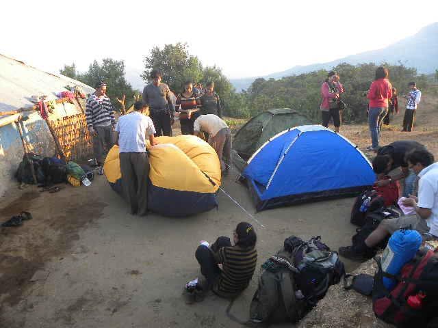 We rested for sometime and it was time to set up our tent. Jagdish showed us a demo for same. Soon, all the tents were up. I pushed myself achingly in to sleeping bag, while all of them continued with bonfire, ghost stories and songs till 10.00 p.m. I was worried about the long ridge we were about to cross tomorrow for Torna, as it stood far-off like a distant dream and wondered, Will I be able to make it?