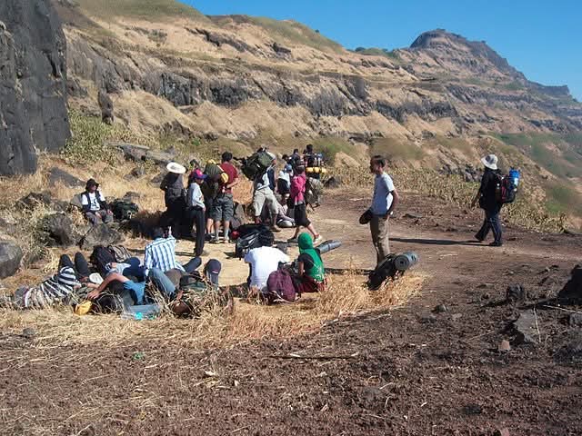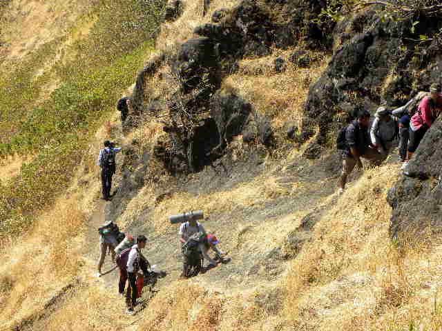 I started off by arriving at Borivali SGNP gate, few trekkers were already waiting there. Saw some familiar faces. We started off by 11.30 p.m. on 23rd Night. Slowly people poured in bus at regular intervals and by Kharghar, the Bus was full. Early boarders like me took complete advantage of our empty seats and took nap via bumpy-headbanging ride till Gunjavane- Base village of Rajgad. We reached at base by 5.30 a.m. After a prolonged round of breakfast, we headed to Rajgad by 7.00 a.m.