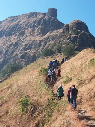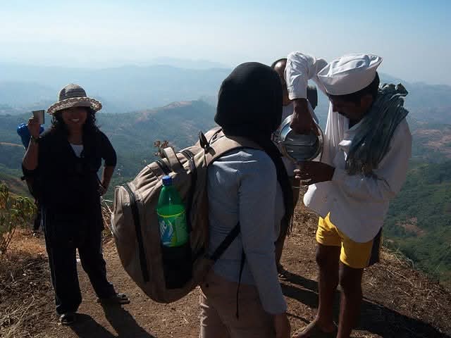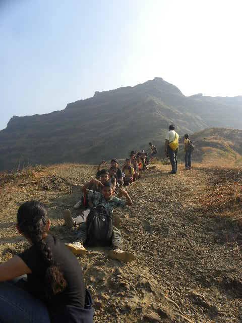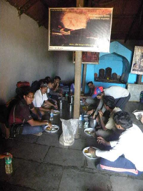 Some of them went ahead to explore Zunzhar machi, while body broken souls like me, Poonam & Madhura rested and managed to get some water to drink with the help of Pritam. We had sumptuous meal at temple and by 3.00 p.m. we started to descend from Torna. A group of school children along-with their teacher had come for Torna trekking.