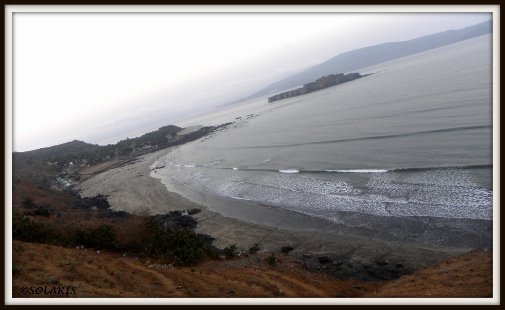 The spectacular view of pristine beaches from Jaigad to Ganpatipule was strikingly so exquisite that it dazzled our eyes. We reached Ganpatipule at 2.30 p.m. Being Saturday, it was less crowded, after darshan, we had light lunch and headed off to Vijaydurg. It was quite a long route. We were supposed to take ferry from Jaitapur to Vijaydurg. But it was not available to common people due to security reasons, hence we took mainland road for same. There was a patch of 4-5 kms of super-smooth, long, empty road. Everyone took out their urge to speed on this patch, after being continuously on alternate rocky, muddy, potholed roads. We reached Vijaydurg just on time i.e. at sunset. My lens captured the Vijaydurg-sunset.
