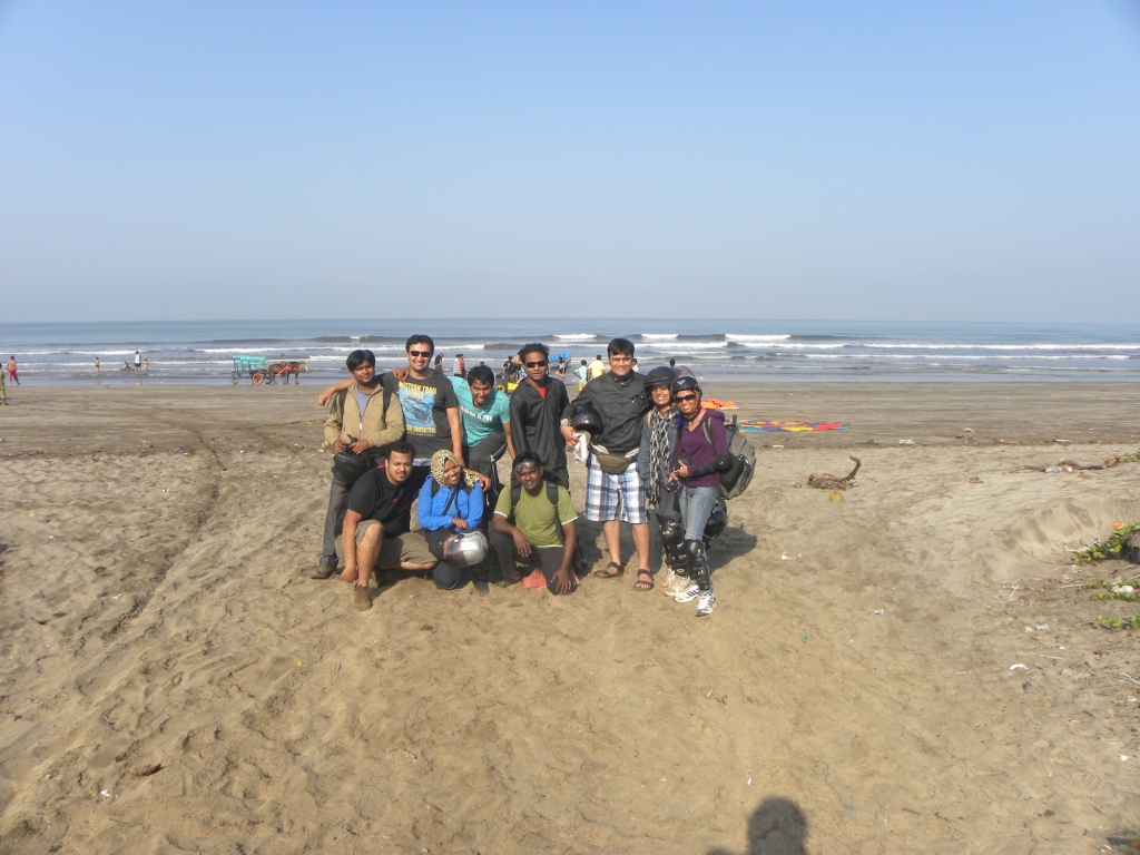 Plan was kept simple, only bikes, few like-minded people, explore whatever interesting comes by, halt wherever night drops-in and lastly as much as possible only roads lined by beach to be taken. Initially, our idea was to night-halt at beach, open up tents and sleep under beautiful open sky with peaceful sound of waves chiming on the background. But, we had few ladies in the group and for our comfortability and sanitation; we decided to halt in homely economical accommodations that are offered in every beach by the generous and helpful villagers. So, with all details and required papers (map), we gathered at Panvel at 10.30 p.m. on Thursday, 05th April, 2012. 6th being Public holiday it was an advantage for office-goers like us, since we can avail a long leave for weekend. Till last moment, there was uncertainity about who will join and drop out at last moment, still, we managed five bikers with 5 pillions and saddle bags mounted on bikes. We started our ad-venture by 12.30 a.m.