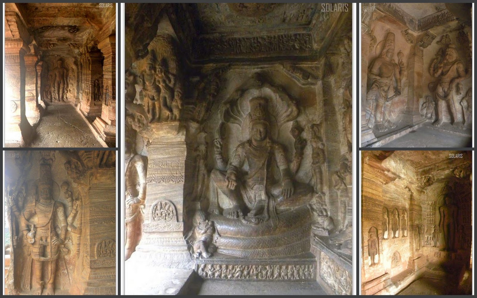 We first ascended directly to the top i.e. Fourth cave – The only Jain cave housing statues of the Jain Tirthankaras in different postures. From here, one can view the entire Badami town alongwith the lake. Sun Rays falling on these caves, lit up the whole place, giving a magnificent texture to the surroundings including the lake. Being Saturday, the crowd started swelling in numbers. We started descending, visiting the Third cave – showcasing sculptures of Vishnu in different avatars, Narasimha (Vishnu as Man-Lion), Varaha, Harihara (Shiva Vishnu) and as Trivikrama. It was the grandest one. Next was second cave – Dedicated to Lord Vishnu and highlights the carvings and incarnations of Varaha (boar) and Vamana (dwarf). Finally, the first cave which is dedicated to Lord Shiva with sculpture of the 18-armed Lord Nataraja (Dancing Shiva), and Shiva Lings.