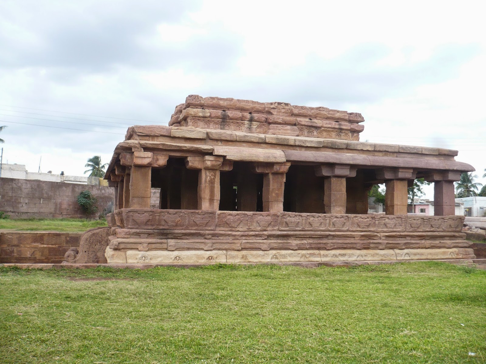 Sanghameswara Temple is the oldest temple in Pattadakal, built in Dravidian style and consists of a sanctum, inner passage and a hall. There are sculptures on the outer wall like those of Ugranarasimha and Nataraja.