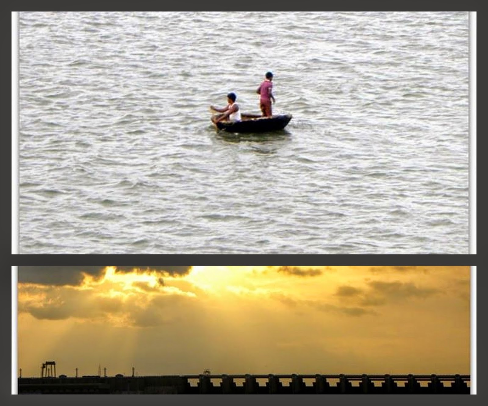 Since, we all had a harrowing previous night. Catching a nap was mandatory. I woke up after a power nap, saw the Almati dam. That one was a sight to behold. I saw a man rowing a coracle in the river. I made everyone get up to catch that sight. We had plan of cruising on a coracle at Hampi. Saw the beautiful, reddish orange lit sunset. The entire route from Bijapur to Badami was stunning with rivers crossing the tracks at every few minutes.