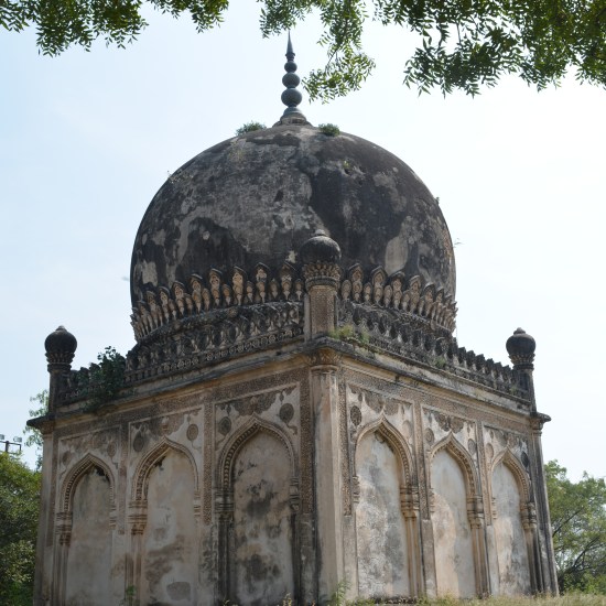 We were hungry and needed something to eat, there are eateries outside fort. We bought some Egg & Veg Puffs before leaving for Qutb Shahi Tombs, which were hardly 1.5 kms far. For Rs. 30/- i.e. Rs. 10 per sharing, we got down at the entrance. It had a humble appearance from outside, once we started walking in, we realized that there were more than 7 tombs. As per the records, the Qutb Shahi tombs complex consists of 30 tombs, mosques and a mortuary bath. The tombs belong to the rulers of the Qutb Shahi Dynasty, their Queens, Children and the Nobles, who faithfully served them, spanning the 130-year period from 1543 to 1672. All of them were built in a grand scale. Some of the structures had the Blue & Green tiles still intact. There was a lady selling cucumbers, we ate that to quench the thirst and to keep ourselves cool. We decided to leave the place by 1.30 pm and go for Birla Temple.