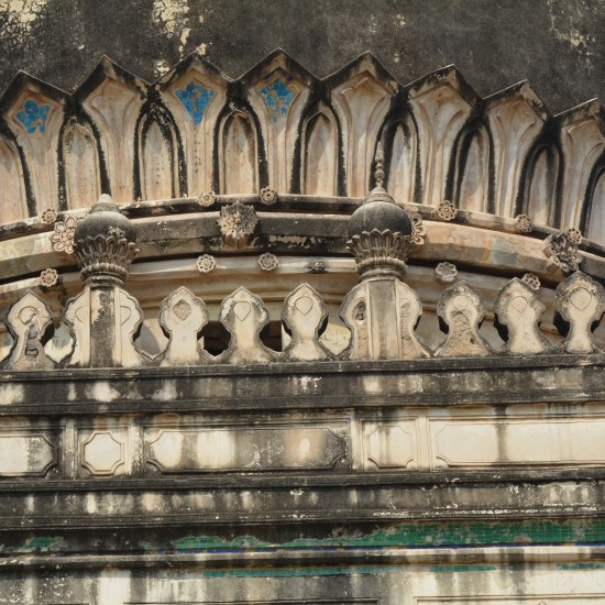 There were two queues, one for the temple adjacent to Charminar and another for monument itself, which was thankfully smaller than the former one. Bought the tickets and were guided into the small spiral staircase, which kept going up and up, only one person at a time can climb the steps. After spiraling, we finally found the light and reached the top. One can view the entire Hyderabad city from all its four sides. Mecca Masjid was few steps away, some constructions were going on. We decided to skip it, suddenly, we remembered the Chow Mohalla Palace was left out. We decided to give it a try before it closes down. We came down passed through laad bazaar, offcourse making plans to come back soon to buy those lovely colorful bangles. We dashed through the busy street, Chow Mohalla Palace was 1-1.5 kms away from Charminar.