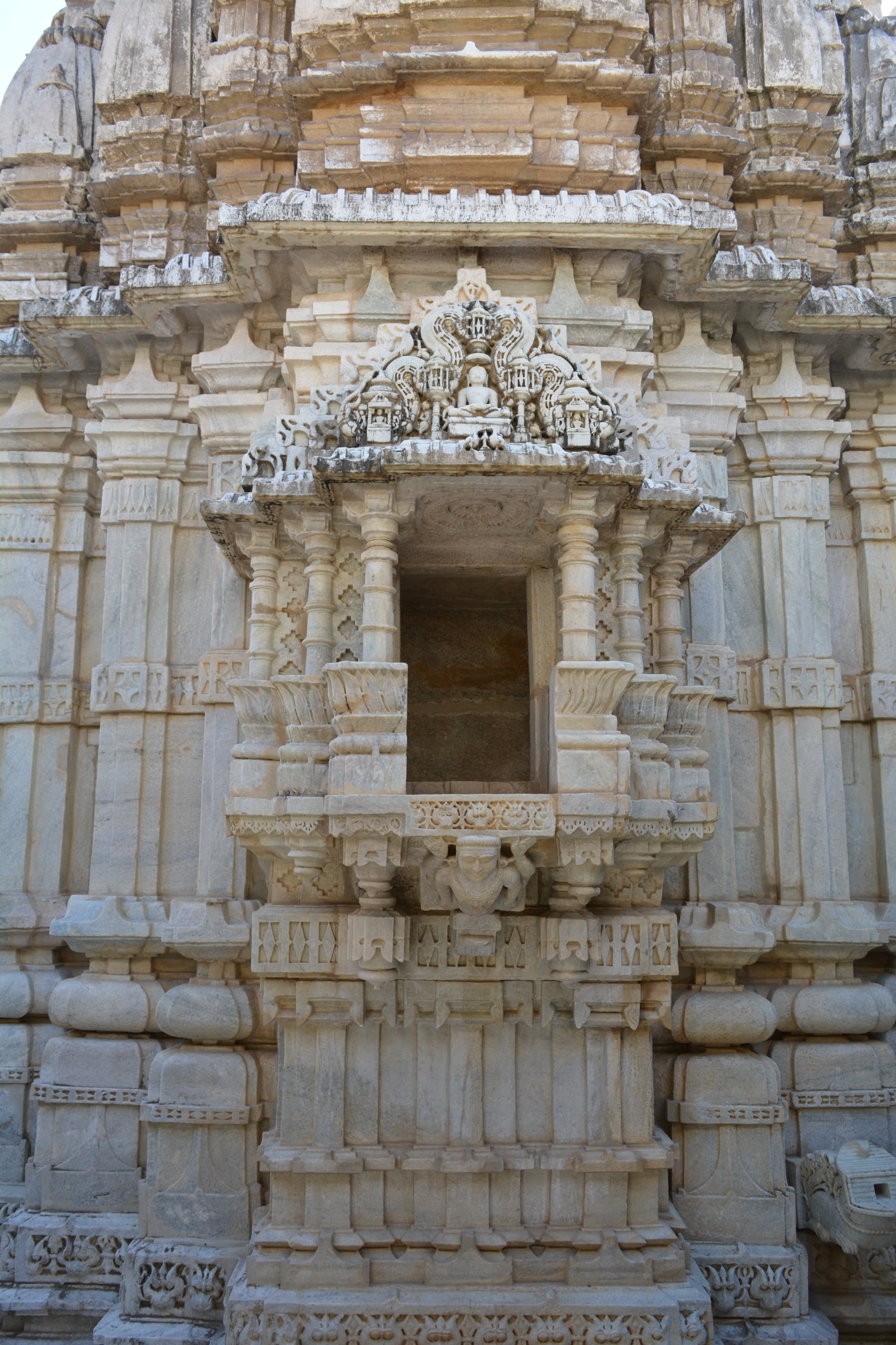 With intricate carvings on each and every pillar, roof and outer façade. Witnessing the jaw dropping art and architecture, we moved at our own pace, capturing each and every carvings in detail. The temple has four entrances and the Sanctum Sanctorum has four huge white marble images of Bhagvan Adinath, 72 inches tall, facing four different directions. Hence, it is popularly known as Chaturmukh Jain Temple.