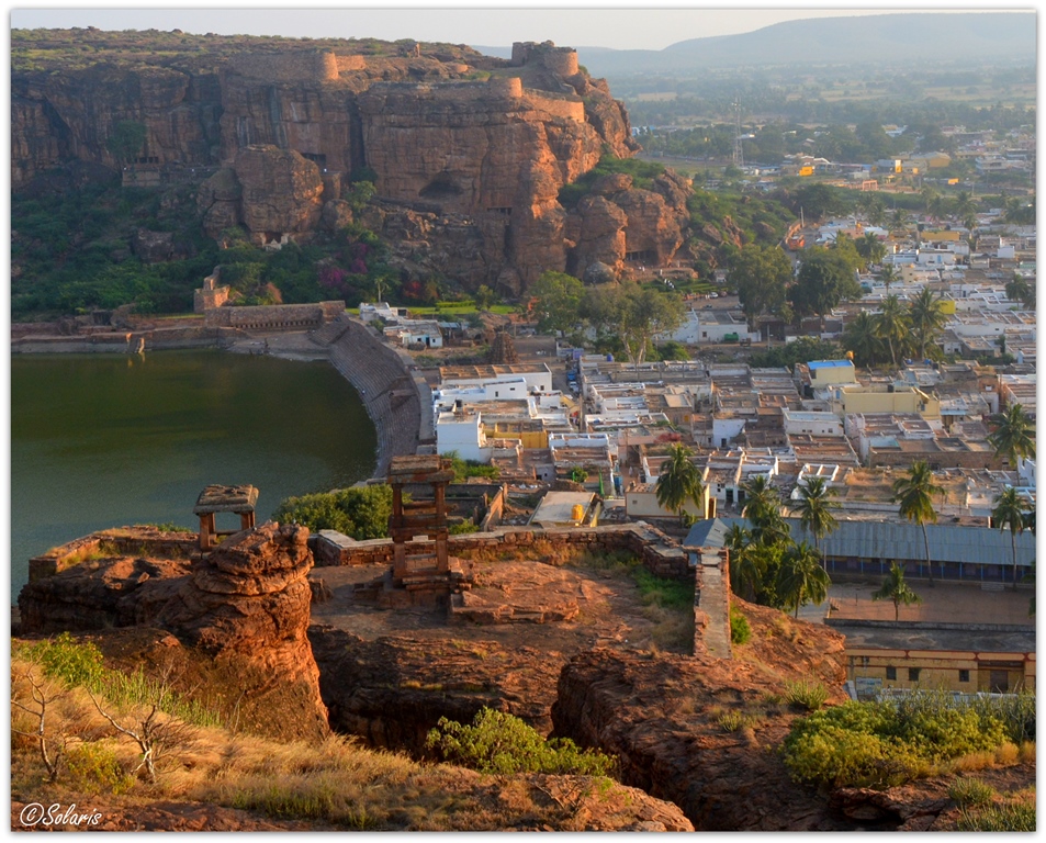 Badami is an ancient town, capital of the Chalukya Dynasty that ruled over the most parts of peninsular India. Badami is comfortably tucked in between two rugged sandstone Hills. This town lies surrounding the 5th century Agastya Tirtha Lake, a holy lake famous for the healing property of its water. Badami was earlier known by the name Vatapi. It is believed that this name is related to the legend of the demon Vatapi, which is associated with Sage Agastya. According to another story, Badami got its name from the Badam (Almond) color of the sandstone of this place. Two of the hills in Badami represent the demons Vatapi and Ilvala.