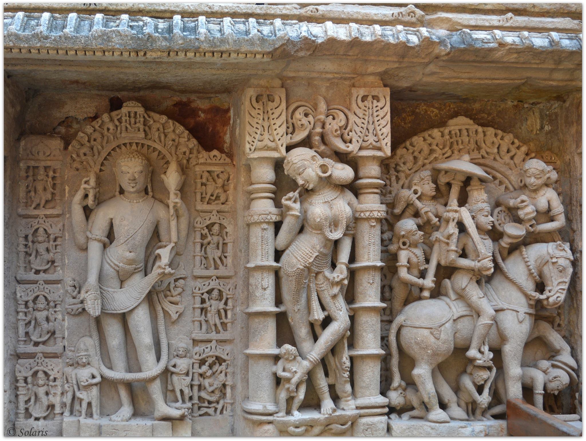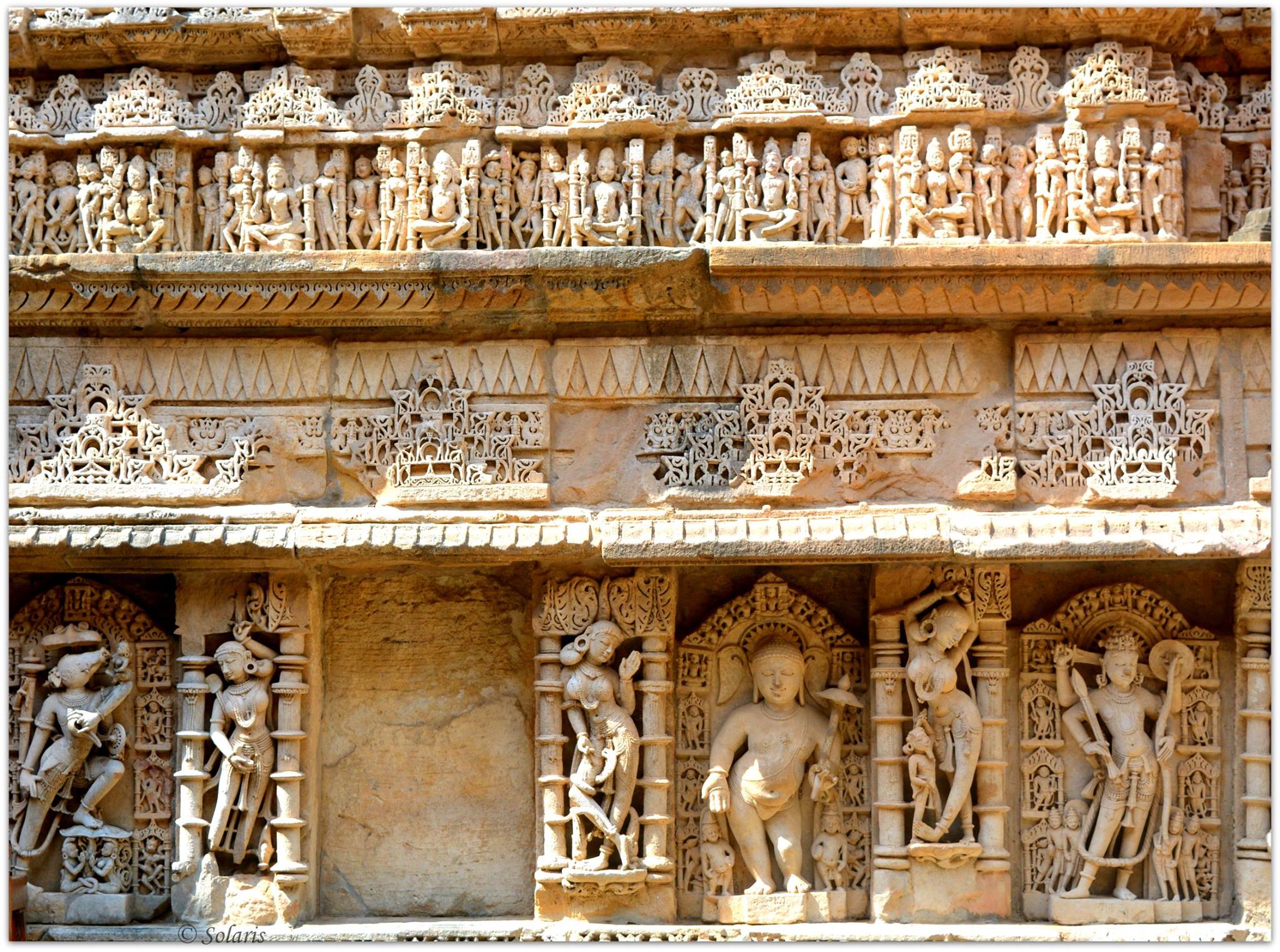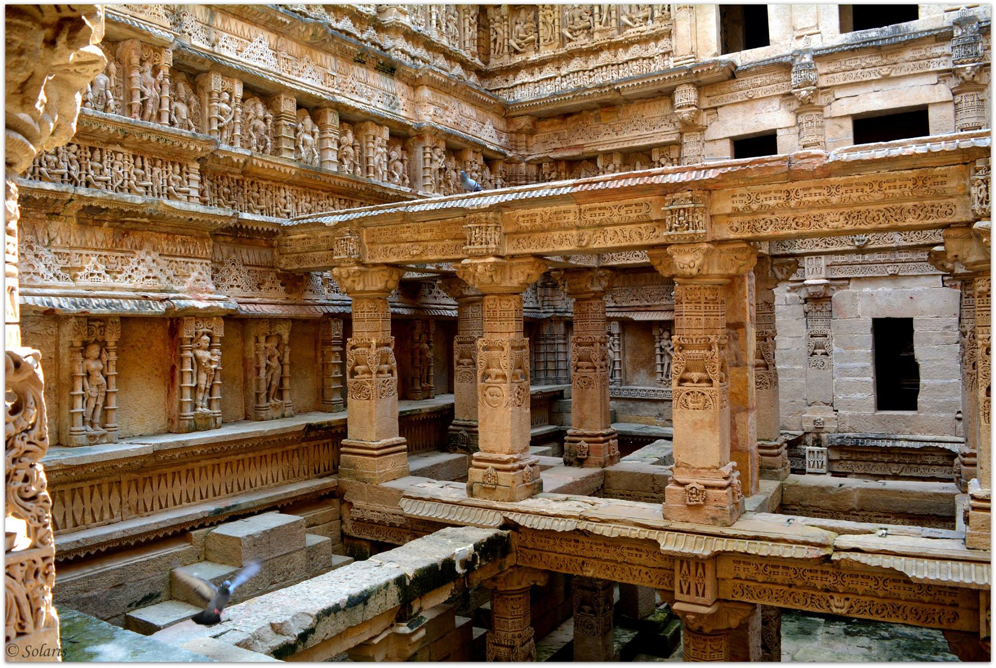 The figurative motifs and sculptures, and the proportion of filled and empty spaces, provide the stepwell’s interior with its unique aesthetic character. The setting enhances these attributes in the way in which the well descends suddenly from a plain plateau, which strengthens the perception of this space. – Sourced from -http://whc.unesco.org/en/list/922).