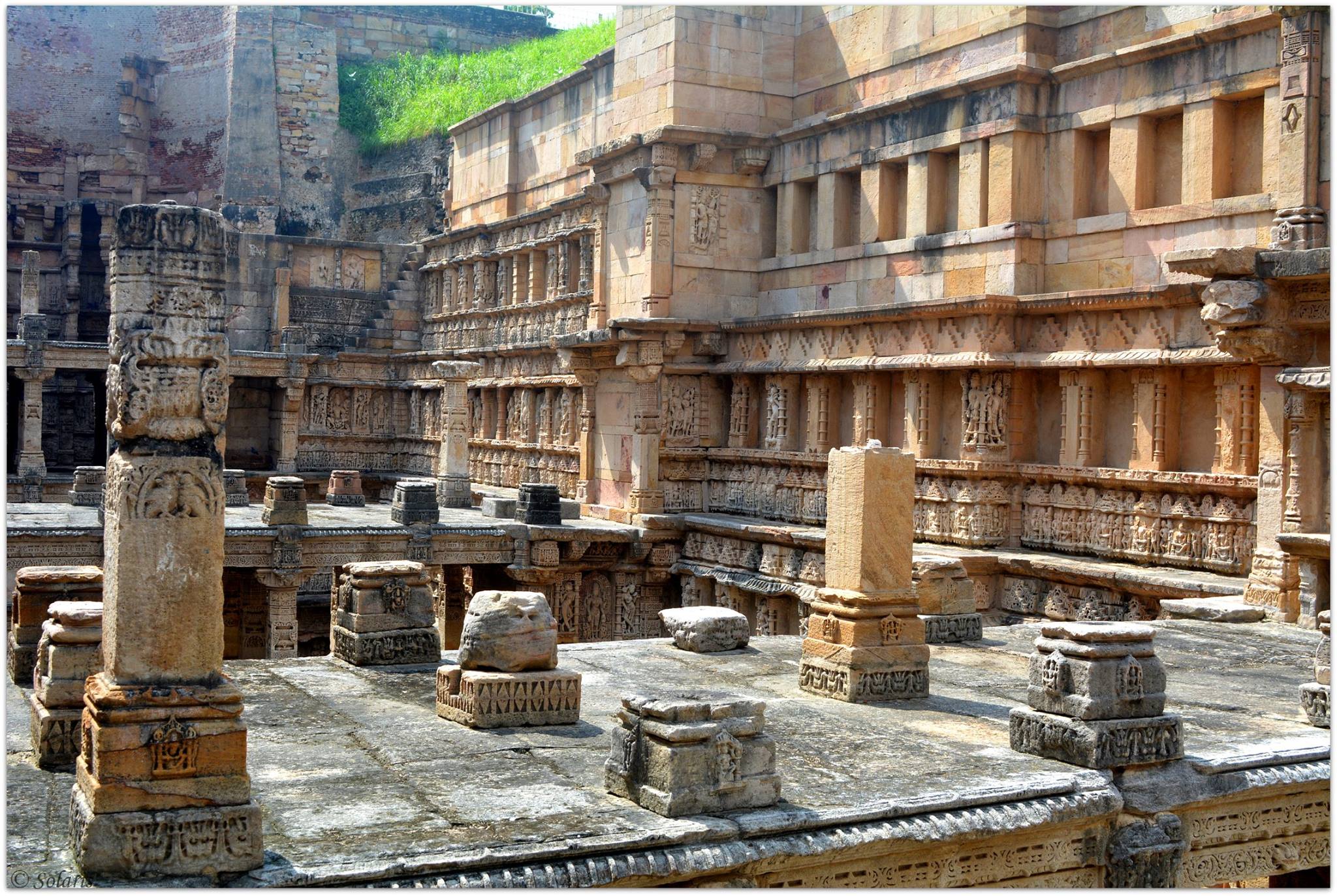 It is oriented in an east-west direction and combines all of the principle components of a stepwell, including a stepped corridor beginning at ground level, a series of four pavilions with an increasing amount of storeys towards the west, the tank, and the well in tunnel shaft form.