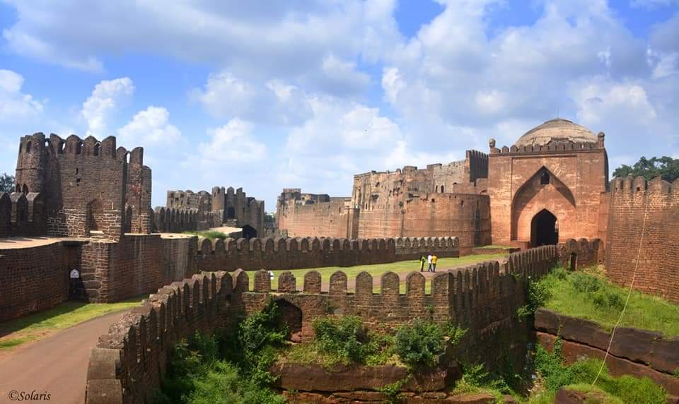 The fort is maintained well and is one of the best forts in Karnataka. It has a Persian Architecture, spreading over 12 sq. miles, comprising of 37 Bastions and surrounded by triple moat which acts as defence. There are 6 gates other than Main entrance called as Gumbad Darwaza, Sherza Darwaza, Fateh Gate, Talghat Gate, Delhi Gate and Mandu Gate. There are guns on the Munda Burj which is the prominent bastion at the entrance.
