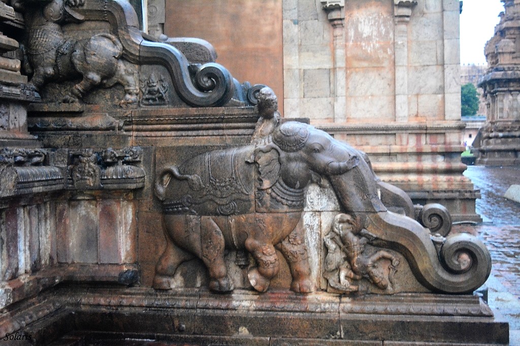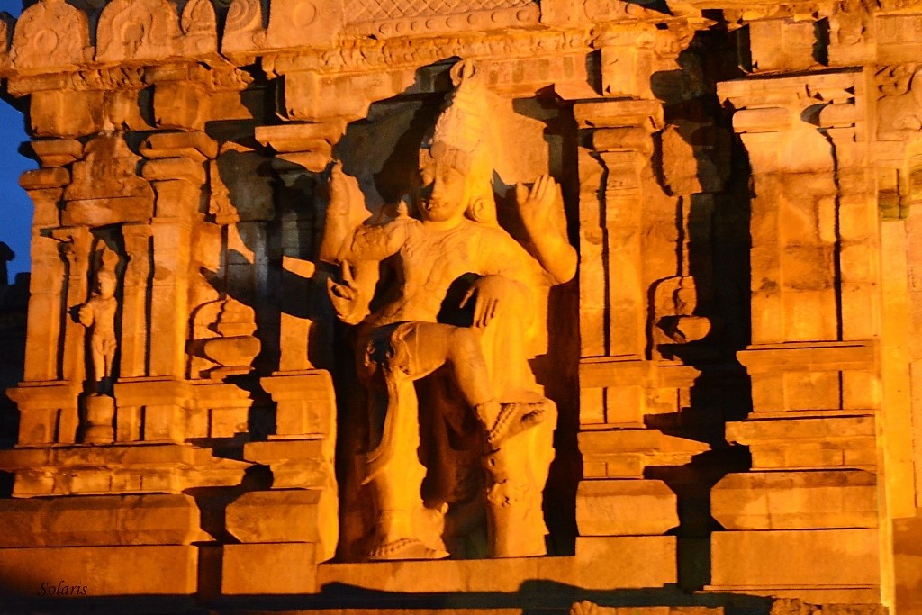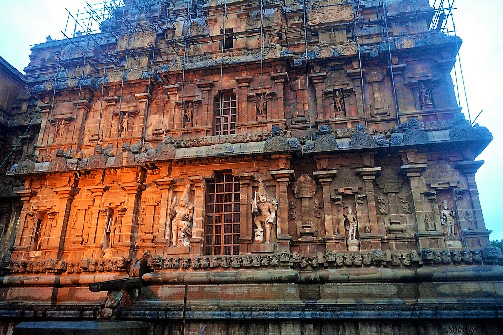 The huge Dwarpalas welcome you on both sides,of the Gopuram. This magnificent Temple was built by Emperor Rajaraja Chola I in 1010 AD, under whom the Chola dynasty spread its wing afar. It is one of the three living Chola Temples (other being the Brihadeesvara at Gangaikondacholapuram and Airavatesvara at Darasuram). I was glad, I visited all three in this trip.