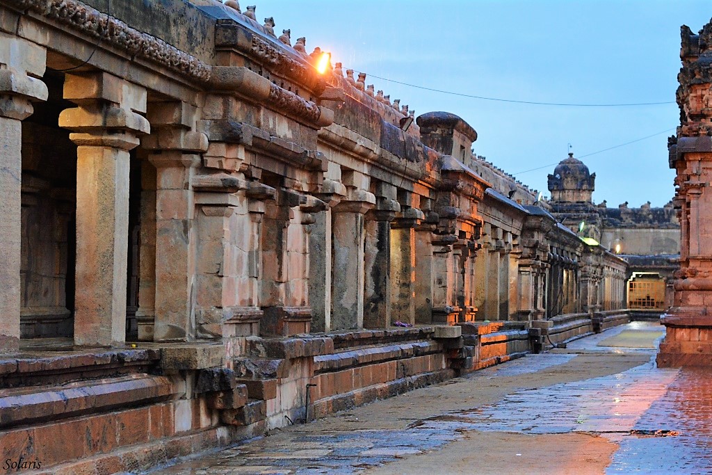 I took an auto (Rs.50 – one way) to Brihadeshwara Temple directly outside the Shop, I was very tired, I could feel light fever creeping in, I was about to skip it and see it next morning as per the original plan, but the hectic idea of travelling to & fro from Hotel (located outside city) in the early morning made me, go for it. The auto driver left me at the left entrance of the Temple instead of the main gate. Hence, I missed the main Gopuram at start. There is a shoe stand to keep the your shoes safely. It was drizzling a bit, but luckily stopped. One of the magnanimous temple.