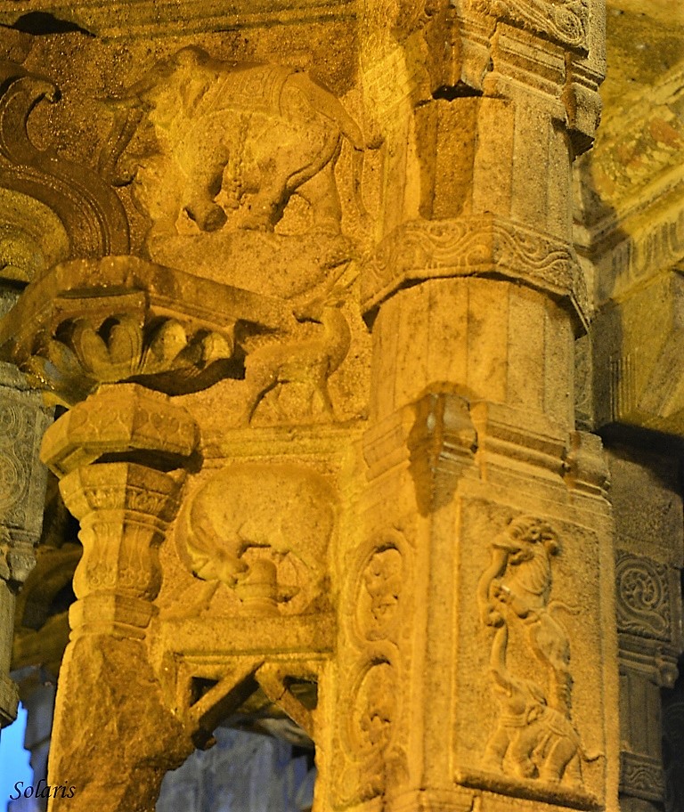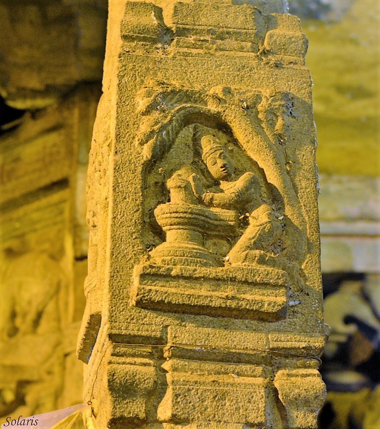 The Vimana is intricately carved with God and Goddesses. The Temple inside and out including the pillars are carved ornately with Nataraja, Durga Vishnu, Laxmi, Ganesha, their favourite animals and 63 Nayanmars throughout.