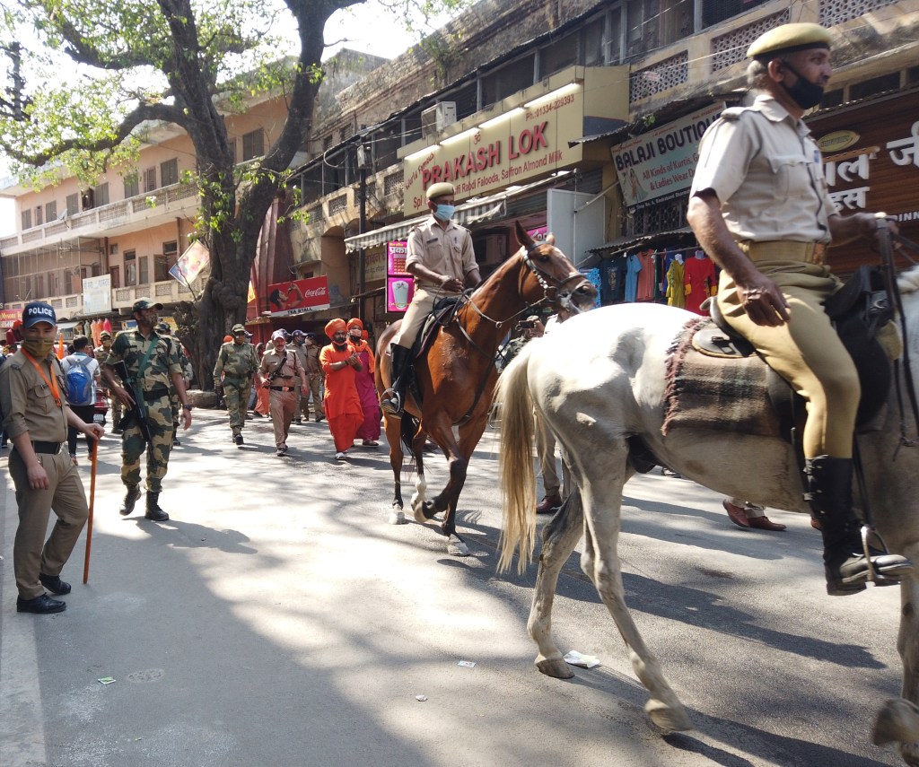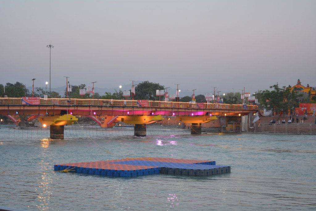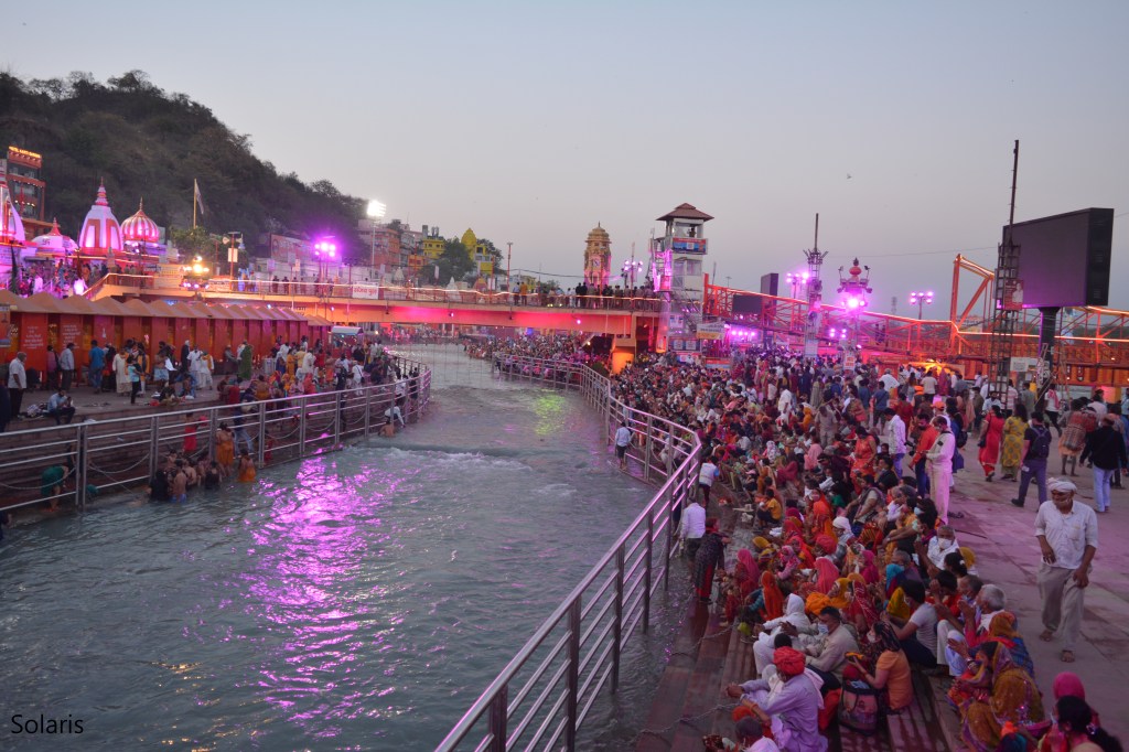We had our lunch at Shivalik Restaurant, which was at the Junction. Fortunately, the food was good, again there was one more procession that passed by while we were having our food. We walked back to hotel, decided to rest and go for Ganga Aarti in the evening. We left for Ganga Aarti at 5.30 PM for Har Ki Paur. Due to security, we had to walk for almost 2 kms to reach the River bank. There was huge crowd gathered to witness the same. The arrangement and security was too tight. Although social distancing had gone for toss, I guess, Police personnel were helpless with such mass gathering.