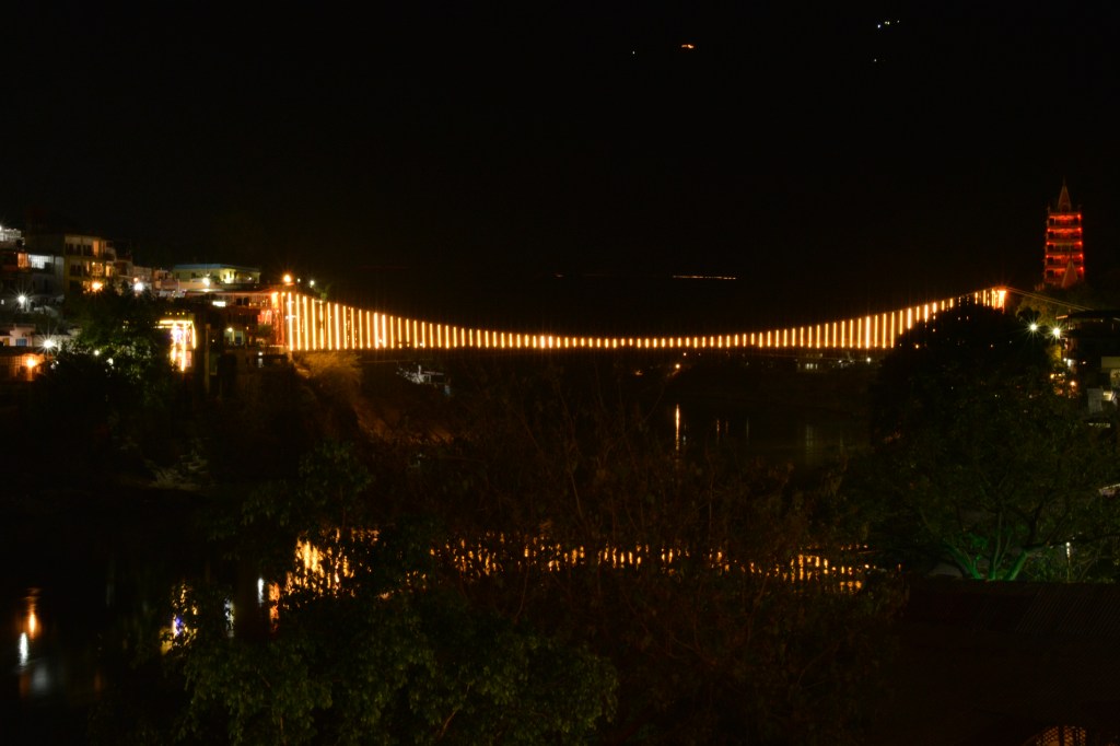 We had to hire another Auto (Rs. 20) to Ram Jhula. I called up the hotel to ask for proper location. Realised the hotel Wanderlove was on other side of the River and Auto has to take longer land route to crossover thereby charging triple the basic amount. There was no motorable road for vehicle to cross over only pedestrian narrow bridges were built over the rivers, one called Ram Jhula, another as Laxman Jhula. And they were like 10 mins apart. After much bargaining, we asked the Auto driver (Rs. 100) to drop us near the Laxman Jhula Foot bridge. We walked over with luggage.