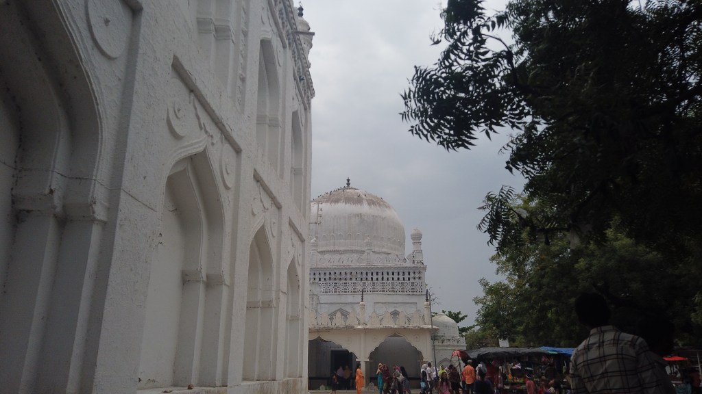 After some rest, I hired an auto for ₹600 to take me to Hazrat Khwaja Bande Nawaz Dargah, a serene white monument dedicated to a 15th-century Sufi saint. It has been built in the Indo-Saracenic style.