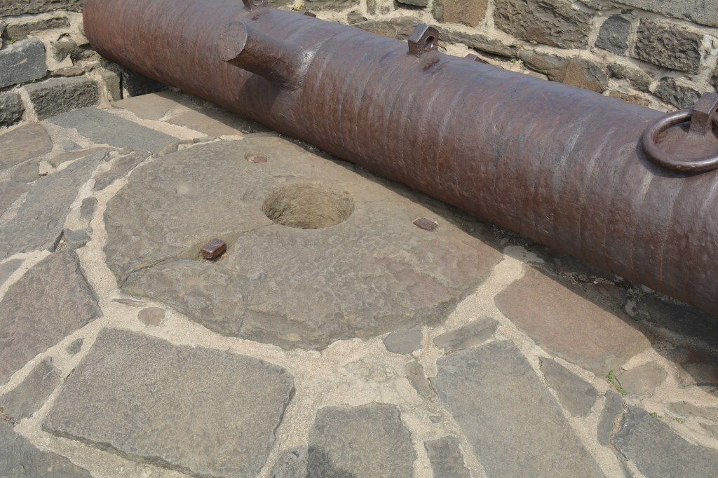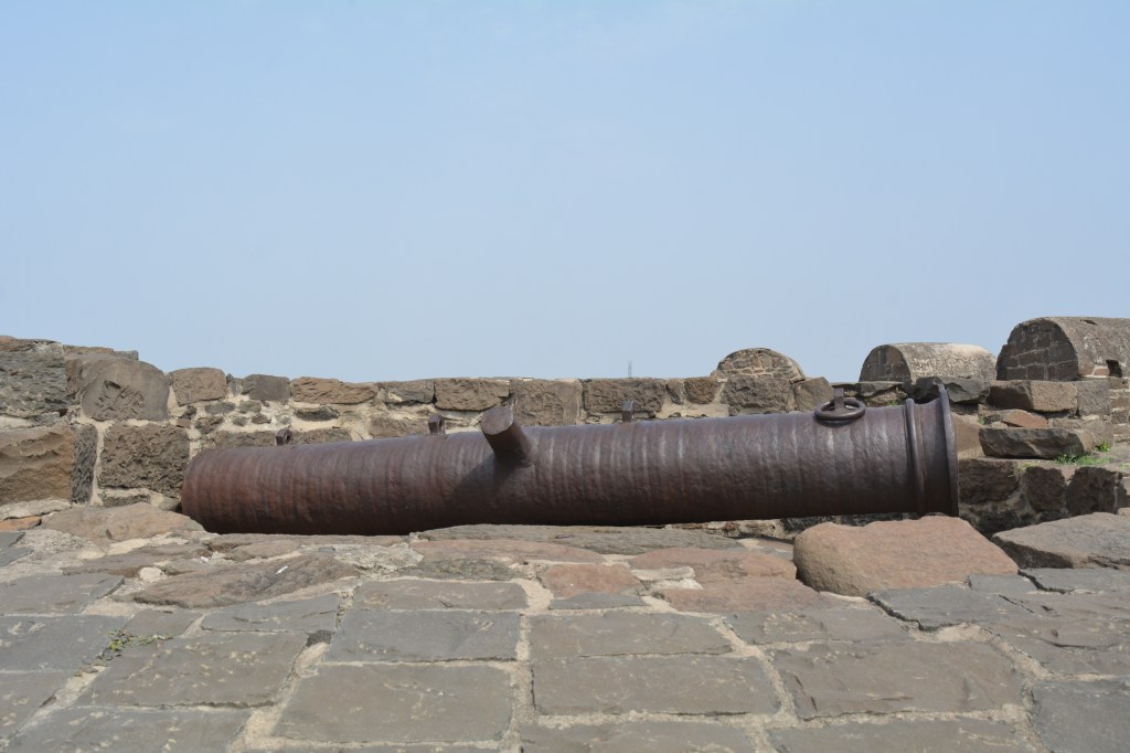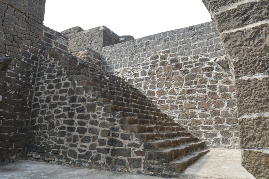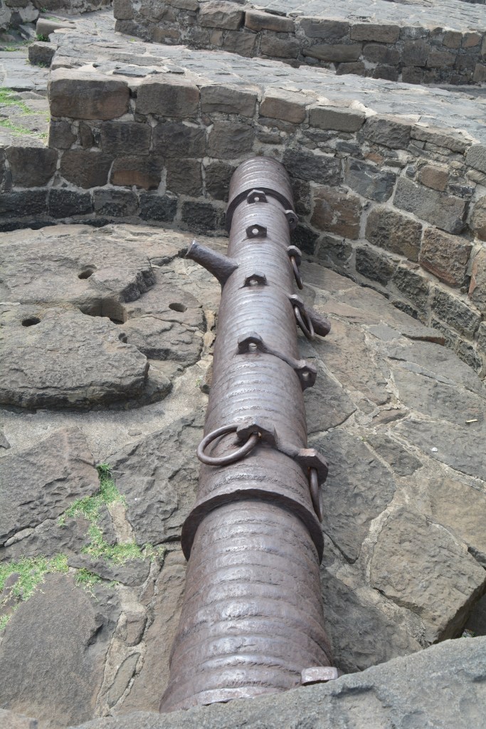 There are rock cut stone steps to climb the bastion, leading to the top, where the 3 huge cannons are placed.
