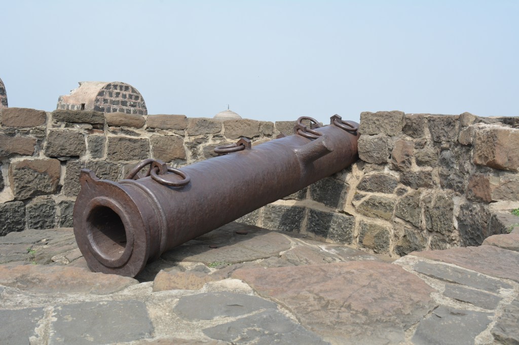 The highlight of my visit was the Bara Gazi Tope, one of the longest cannons in the world (interest piqued after visiting the Bijapur’s Malik-e-Maidan Tope). Made from an alloy (Panchdhatu), this cannon measures 2 ft in diameter, 7 inches thick, 29 feet in length and a circumference of 7.6 ft. This This huge unique weapon weighs around 70-75 tonnes. Standing there in front of the cannon, I couldn’t help but marvel at the engineering prowess of the Bahmani Sultanate.