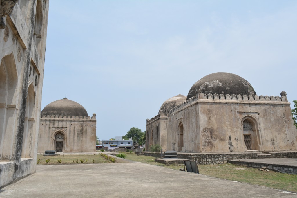 Unfortunately, the caretaker had gone to a wedding and locked the doors of the mosque, so I was only able to admire it from the outside. Despite not being able to enter, the beauty of the mosque’s architecture was still captivating, especially its domes and arched columns, which are rare to find in mosques of this region. There are few stalls outside to eat. After this visit, I asked the auto driver to drop me at Haft Gumbaz. The small iron gate was locked, I looked around for some place to pass the time. There is a restaurant just opposite the Gate, I sat there for sometime for breakfast, hoping that the gate will be open by 09:00 or 09:30 am. After breakfast, I asked the hotel person, regarding the timing. He said the person arrives by 09:00 am. From 08:30 till 10:00 am, I waited. Finally got fed up, thought of coming back later in evening.