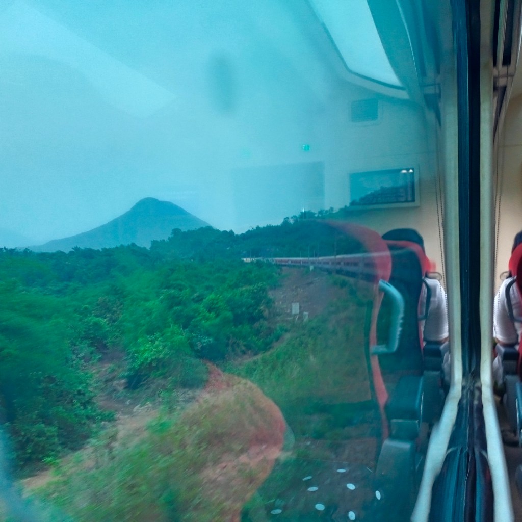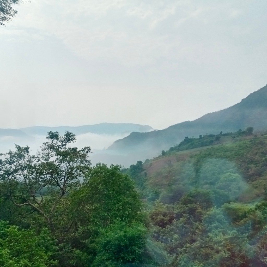 The next morning, 7th June 2022, I checked out of my hotel in Visakhapatnam at 6:00 AM. My journey to Araku Valley was about to begin and I was eager for the scenic adventure ahead. I took an auto to Vizag Railway Station, where I stored my luggage in the cloakroom before waiting for my Vizag-Araku train, which was scheduled to depart at 6:45 AM. For this leg of my trip, I had booked a seat in the Vistadome coach, which I had heard so much about and was eager to experience firsthand. Additional fare was collected on-board by us, since, the fare was revised one month earlier, while people like me had booked the ticket three months prior. The train arrived and I boarded the Vistadome coach. This coach was truly a treat for travelers who enjoy scenic views. The seats were designed to rotate 360 degrees, allowing passengers to enjoy views from any direction. The roof, however, wasn’t transparent, as I had imagined, but it was still a comfortable and unique travel experience. Since I was traveling solo, I had to swap my seat several times to accommodate families who needed more space. But once I finally settled by the window, I watched the city give way to the majestic mountains. The lush greenery of the Araku Valley was breathtaking.