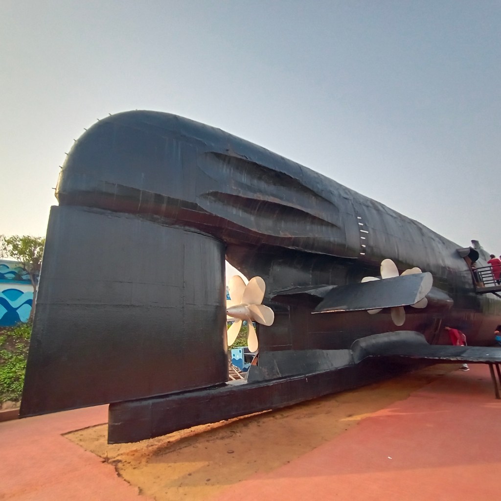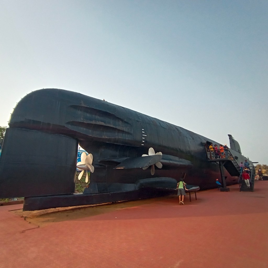 Along the beach, I first visited the VMRDA INS Kursura Submarine Museum, located right by the water. There’s an entry fee of ₹40 and while photography charges apply, you can click photos on your mobile for free. INS Kursura, the fourth submarine of the Indian Navy, was carefully transported to the beach in February 2001, where it was transformed into a museum.